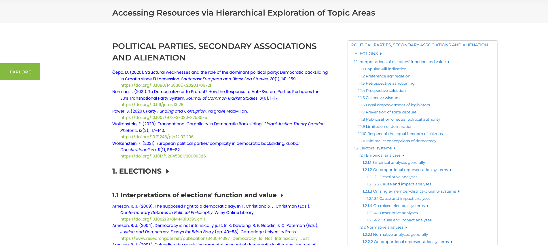 Project scientists developed 6 databases of references to resources highly relevant for the project research. To facilitate a meaningful exploration of the reference collections, Pragma Communication developed an on-line tool which allows their browsing and access to resources by simply traversing a topic hierarchies associated with the 6 research areas.